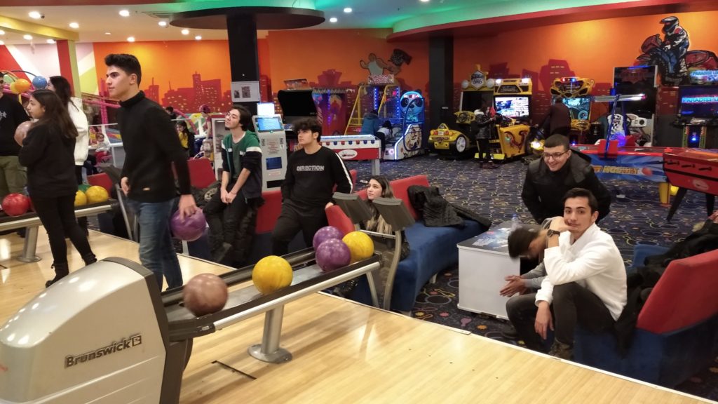 Bir pazartesi günü etütte olmamız gereken saatlerde kaçamak yaparak AVM’de buluştuk. Yemek katında masaları birleştirip muhabbet ederek toplanmayı bekledik. Oyun salonunda 4 yol kiralayıp bowling oynadık.